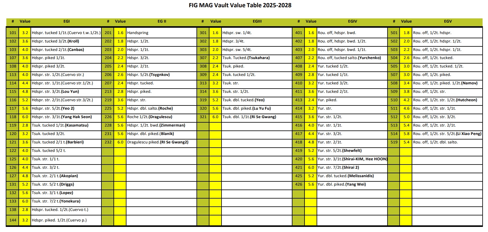 Code of Points MAG Gymnastics 2025 - 2028 (Explanation)